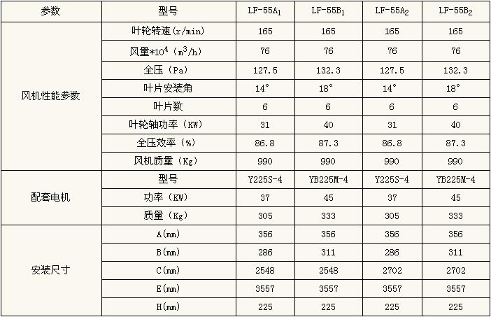 LF-55風機性能參數(shù)一覽表