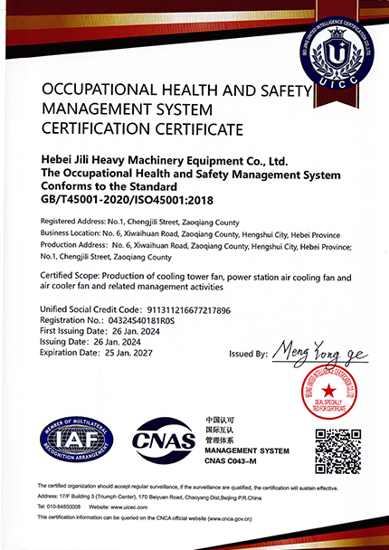 職業(yè)健康安全管理體系認(rèn)證證書